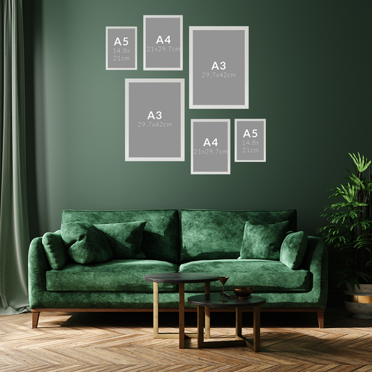 6 Piece Black Wooden Picture Frame Set, 2 x A3 frame, 2 x A4 frames & 2 x A5 frame, Black Frame Set