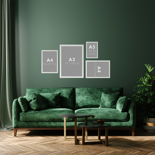4 Piece Black Wooden Picture Frame Set, 1 x A3 frame, 2 x A4 frames & 1 x A5 frame, Black Frame Set