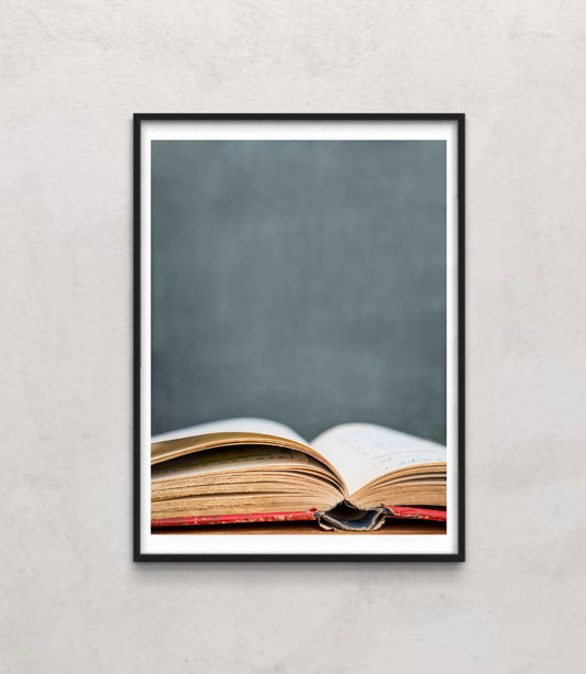 Old Book open in front of Blackboard