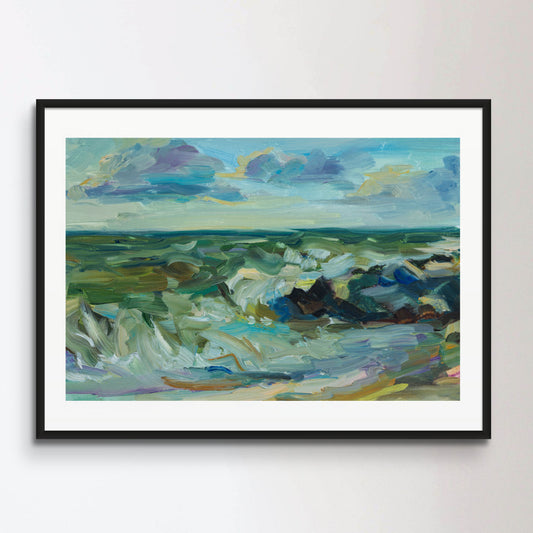 Sea oil painting. Abstract turquoise seascape. Impressionism, plein-air sketch, original work.